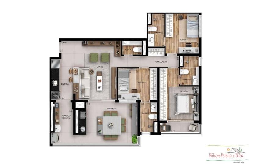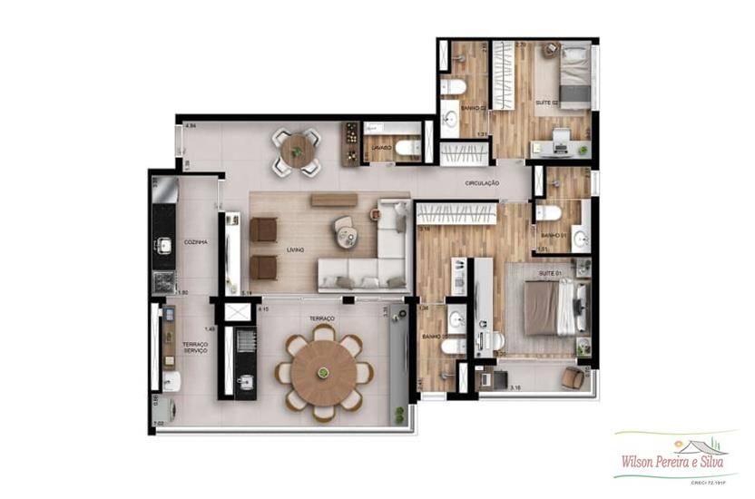 - Opção de 2 ou 3 Suítes
