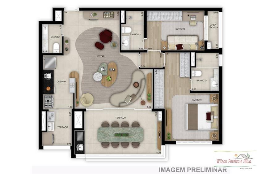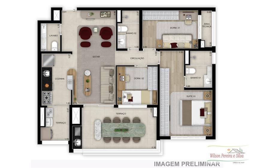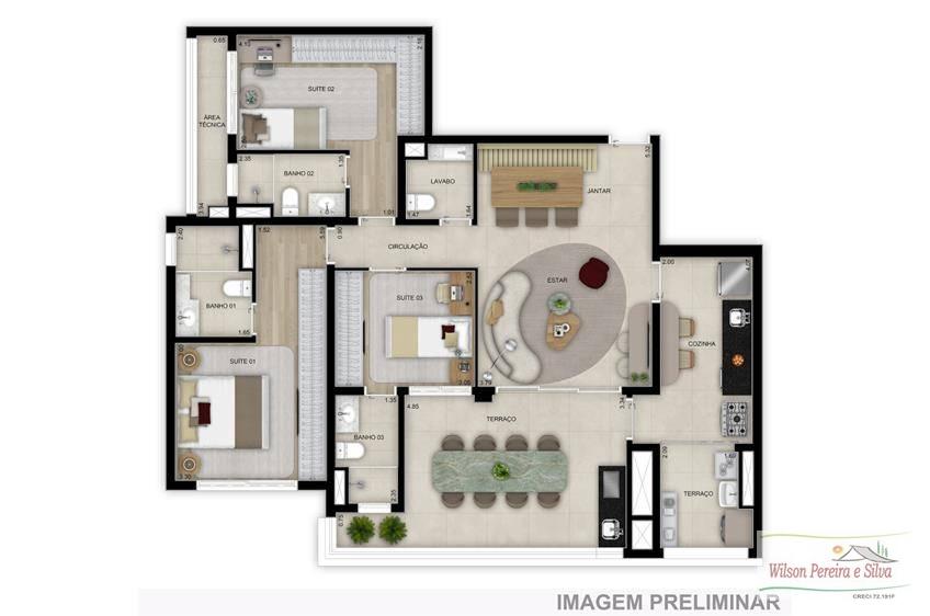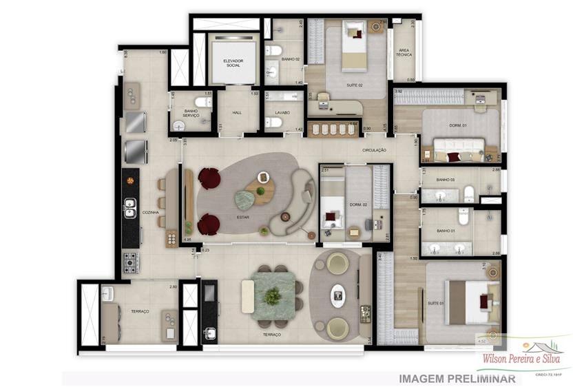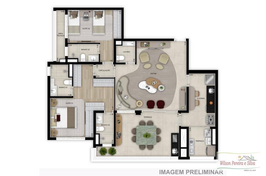 Um terreno com mais de 5.000m²* reservado para o seu pleno bem-estar, o empreendimento possui apartamentos de 3 e 4 dorms. (c/ suítes), 4 suítes, plantas espaçosas e inteligentes de 97, 120, 159 e 184m² e Lazer completo.