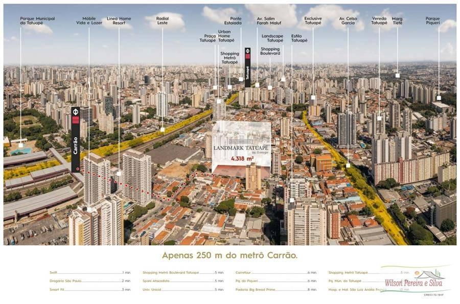 O empreendimento LANDMARK TATUAPÉ BY DIÁLOGO será construído em um terreno de 4.318m², torre única, 30 pavimentos, 05 elevadores, 08 unidades por andar, 212 apartamentos no total.